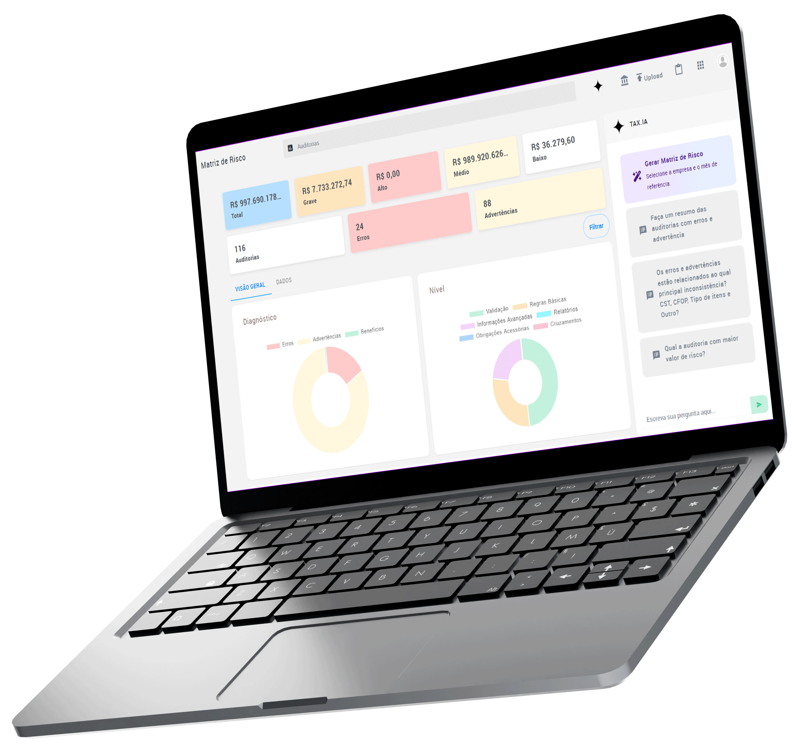 A Matriz de Risco organiza e cruza os dados fiscais da sua empresa para transformar informações complexas em direcionamentos claros.